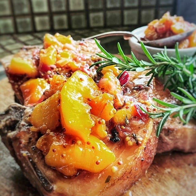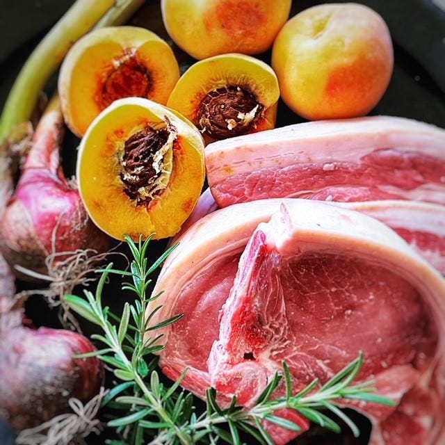 When I was given a bucket of peaches I knew what I had to do. First I ate about a dozen and gave myself a severe tummy ache....then I thought I'd better share some so I made this delicious dish. While I don't adhere to a 'diet' with a name (no keto, no vegetarian, no paleo) I always try to pack my food with nutrients and to use the very best I can get, organic if possible. Whatever you're into, if you eat pork I promise you'll love these little chops x